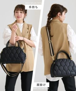 LIZDAYS トートバッグ レディース ショルダーバッグ 斜め掛け 大人 軽量 ナイロン 2WAY キルティング 撥水 ハンドバッグ 自立 底鋲 斜めがけバッグ