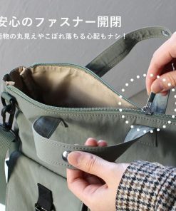 肩掛けや斜め掛けもできるショルダーストラップ付きで持ち方のアレンジも出来ます。