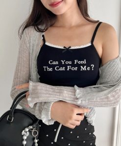 Loueme キャミソール プチリボンロゴプリントカップ付きキャミソール