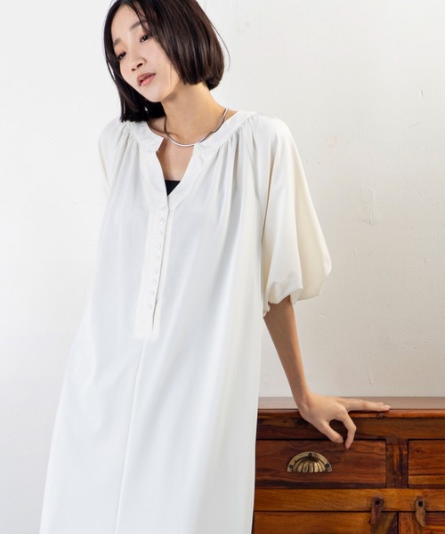 商品名:着映えとリラックスを両立!ふんわり袖×落ち感で魅せる、大人の抜け感ワンピース