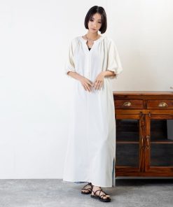 キーワード:ワンピース ロング 七分袖 五分袖 台形 無地