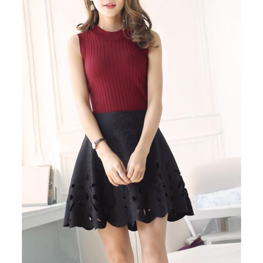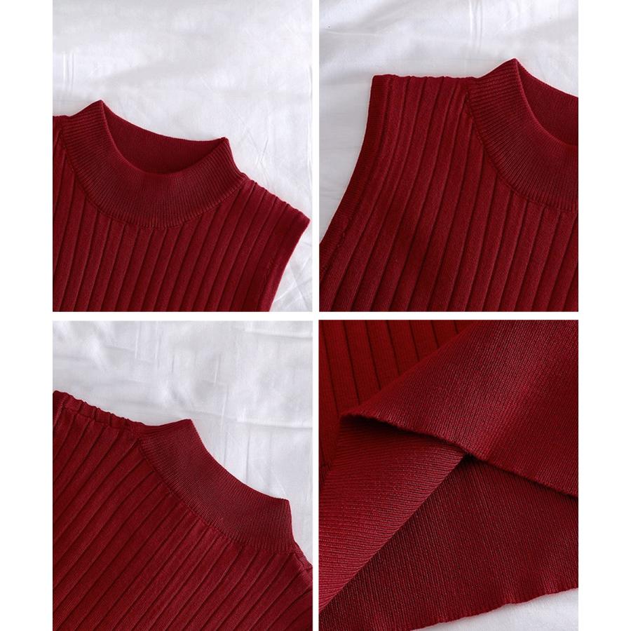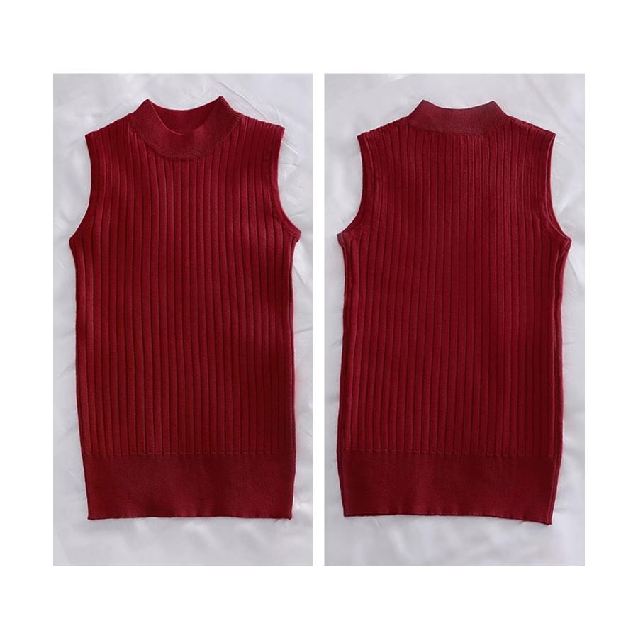 韓国風クルーネックニット ショート丈インナートップス ノースリーブ 重ね着ニットタンクトップ 着やせ 春夏秋冬ニットソー