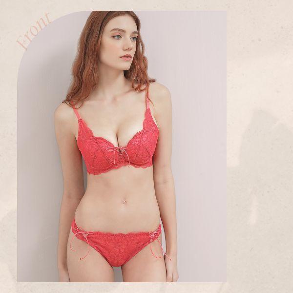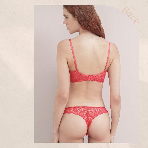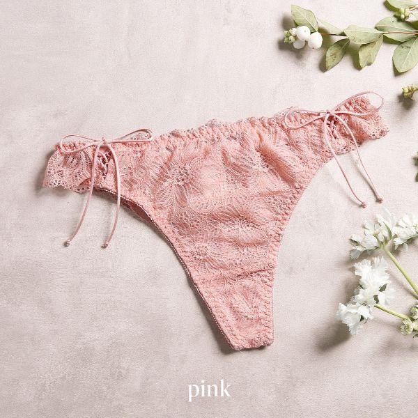 同シリーズのブラとのコーディネートはもちろん、ワンカラーなので単品使いもしやすく愛らしいリボンのあしらいに気分があがるTバックショーツ。