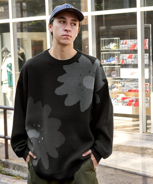 参考商品名:【FLOOWM/フルーム】Wジャガード フラワーグラフィック ビッグシルエットプルオーバーニット