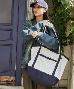 商品名:【retock’s】配色グローサリーバッグ ヴィンテージライクゴールドDカン付 キャンバスビッグトート