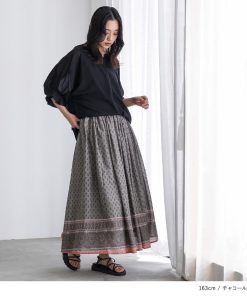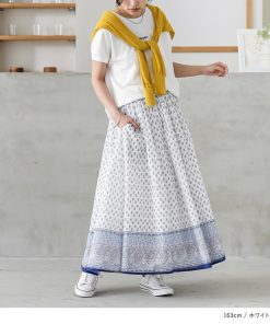 osharewalker フレアスカート ロング レディース ボトムス パネル柄 裏地付き ポケット ウエストゴム コットン100% 薄手 カジュアル きれいめ 春 夏「メール便不可」「20」