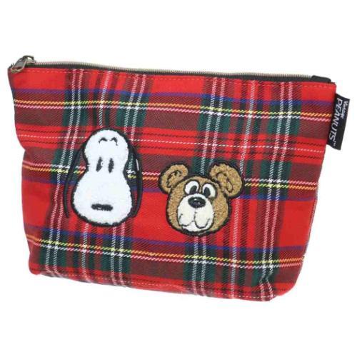 PEANUTS スヌーピー コスメポーチ チェック化粧ポーチ スヌーピーとベア チェック ピーナッツ