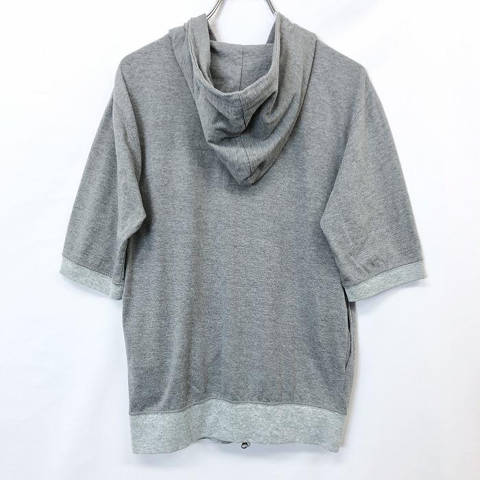 RAGEBLUE レイジブルー 薄手 ダブルジップ パーカー カットソー Tシャツ生地 アーガイル 5分袖 綿×レーヨン M ヘザーグレー 杢灰色 メンズ
