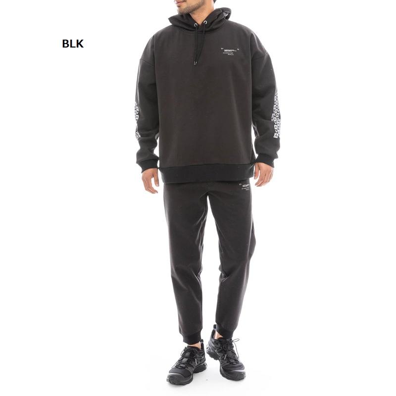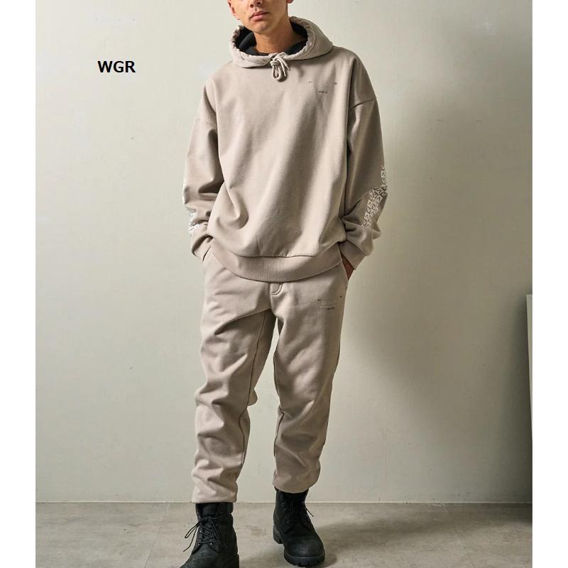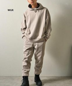 パーカーは身幅にゆとりのあるリラックス感で、パンツはやや細身のスタイリッシュなシルエットで仕上げました。