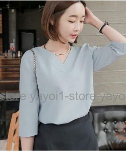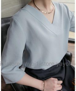 Tブラウス シャツ スーツ インナー ブラウス vネック 七分袖 フレアスリーブ オフィス カジュアル レディース フォーマル ス スキッパーシャツ カットソ…