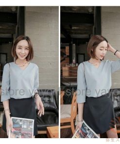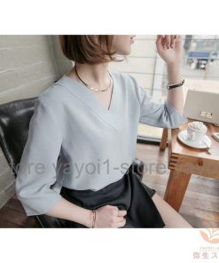 Tブラウス シャツ スーツ インナー ブラウス vネック 七分袖 フレアスリーブ オフィス カジュアル レディース フォーマル ス スキッパーシャツ