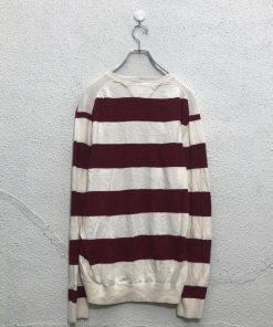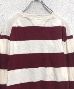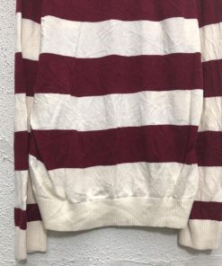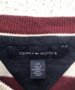 TOMMY HILFIGER コットン ニット セーター トミーヒルフィガー L ホワイト レッド ボーダー Vネック 古着卸 アメリカ仕入 a605-8335