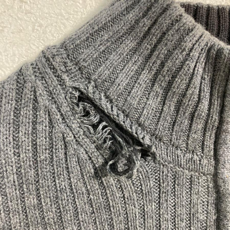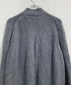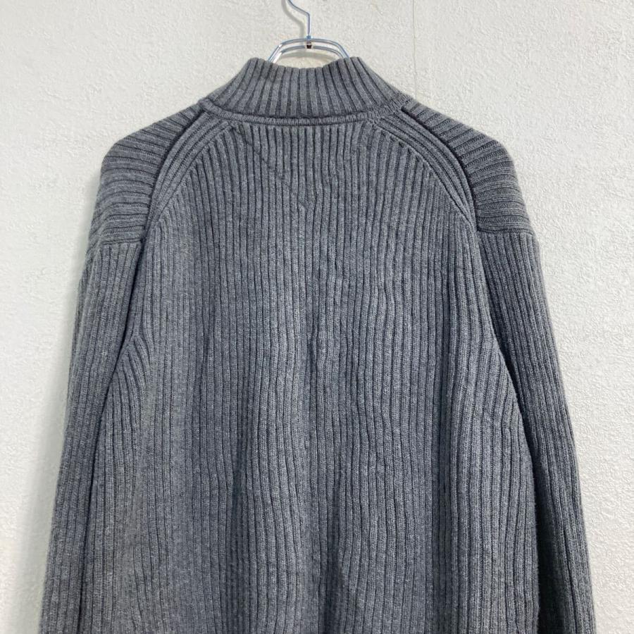 TOMMY HILFIGER コットン ニット セーター M グレー トミーヒルフィガー ジップアップ リブ 古着卸 アメリカ仕入 a702-5197