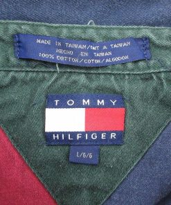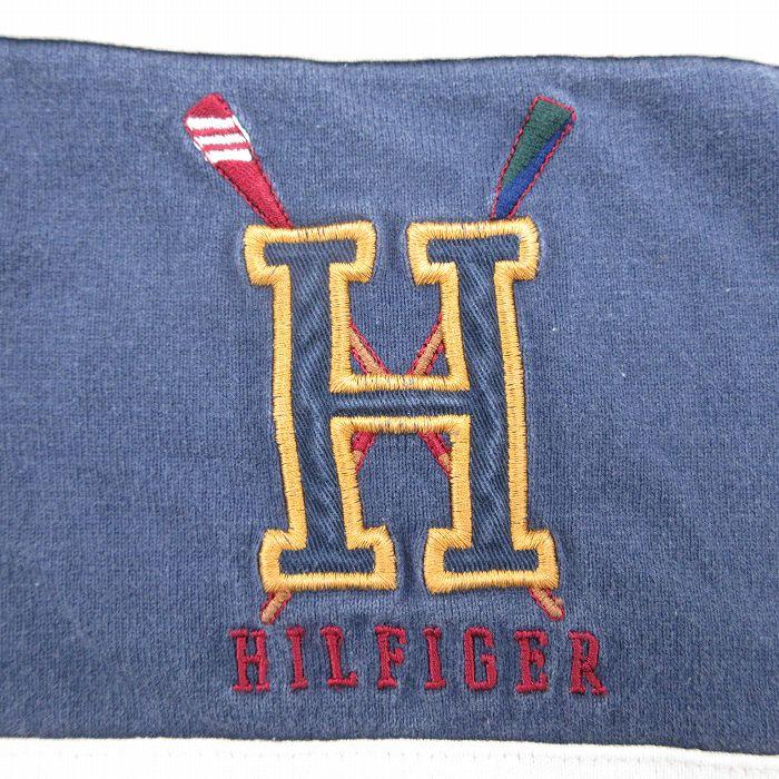 【商品名】 L★古着 トミーヒルフィガー 長袖 ブランド ラガー シャツ メンズ 90年代 90s ビッグロゴ コットン 紺他 ボーダー【spe】