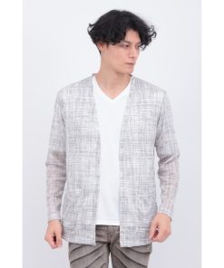 TORNADO MART tシャツ モザイクチェックノーカラーカーデ メンズ