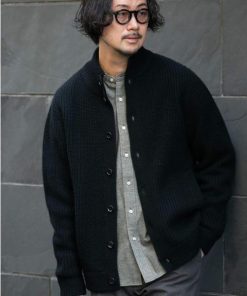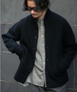 商品名:『XLサイズあり』ハミルトンラムズウールスタンドカラーカーディガン