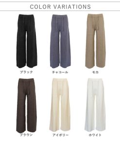 uricca ボトムス レディース リブニットパンツ ストレートパンツ 秋 冬 白 黒 おしゃれ かわいい 30代 40代 50代 無地 ウエストゴム ゆったり [郵3]^b505^