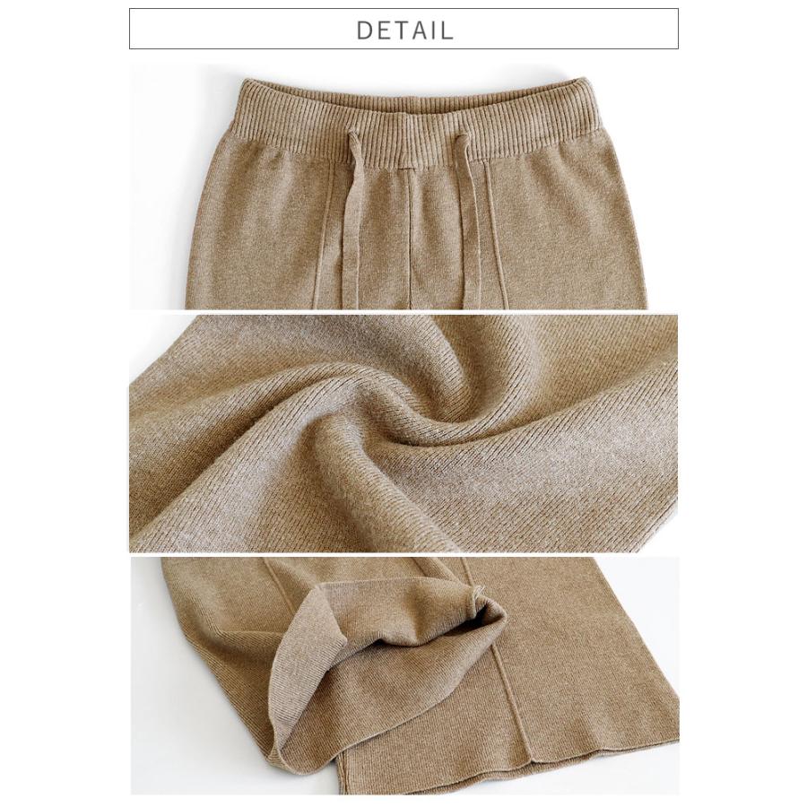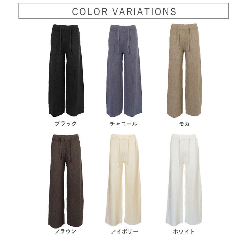 uricca ボトムス レディース リブニットパンツ ストレートパンツ 秋 冬 白 黒 おしゃれ かわいい 30代 40代 50代 無地 ウエストゴム ゆったり [郵3]^b505^