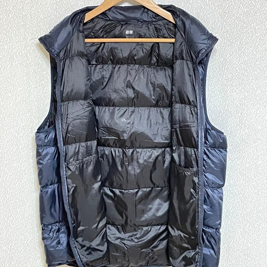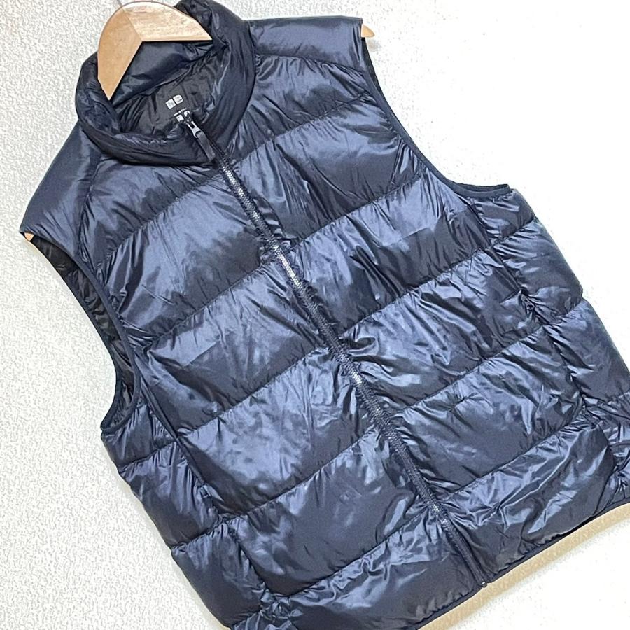 (^w^)b UNIQLO ユニクロ ウルトラライトダウンベスト チョッキ ジレ ハイネック ダークネイビー系 中衣 軽量 防寒 メンズ 男女兼用/Y9882FF