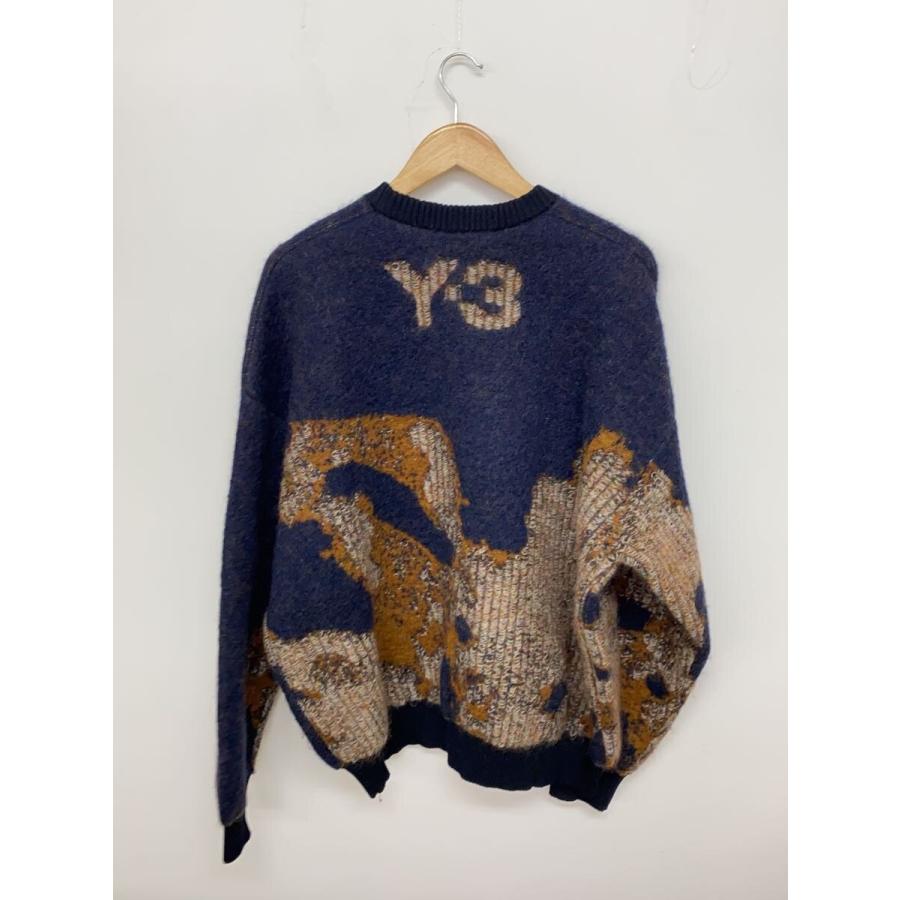 Y-3◆U CH1 CAMO KNIT CREW SWEATER/L/ポリエステル/NVY/総柄/HE1569/カモフラ