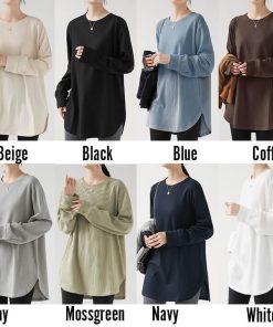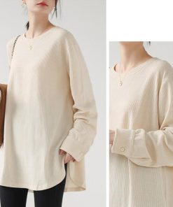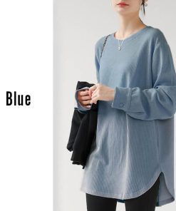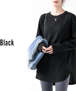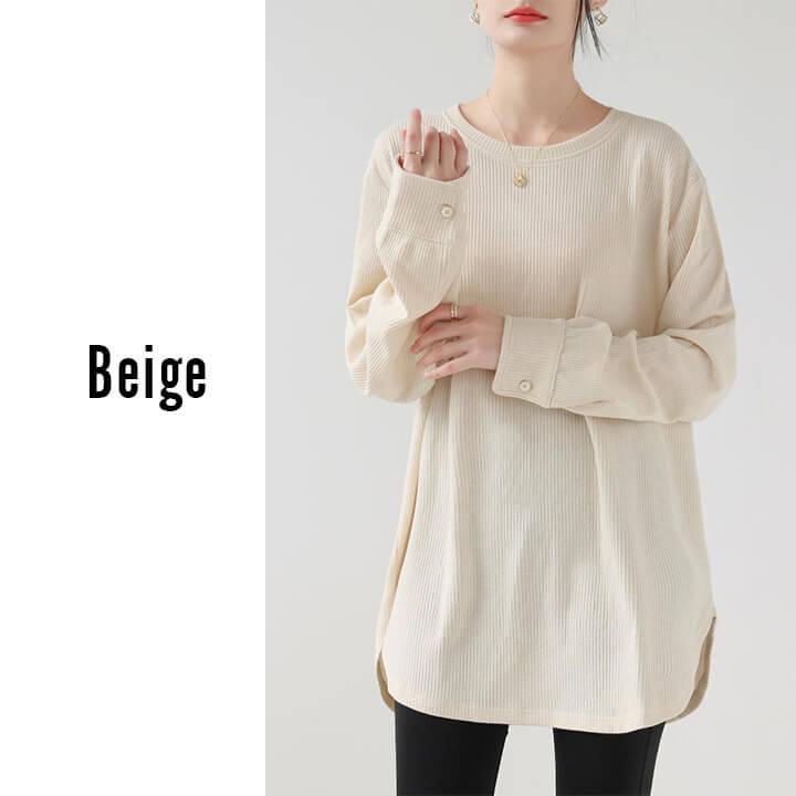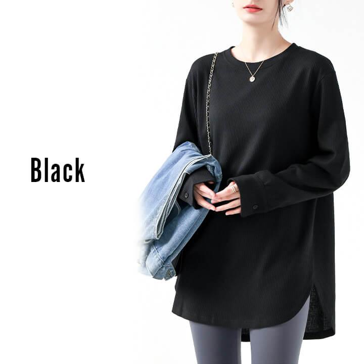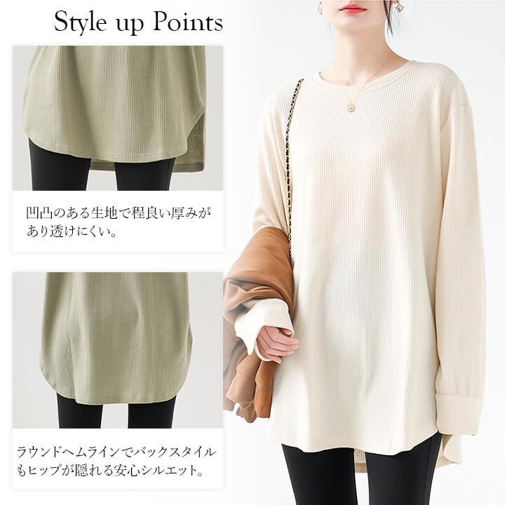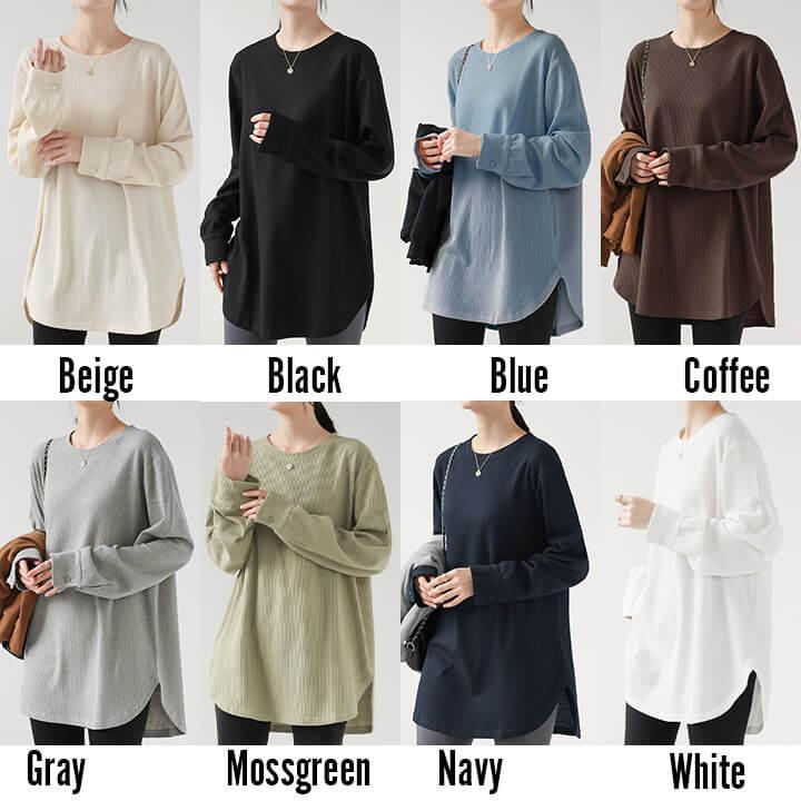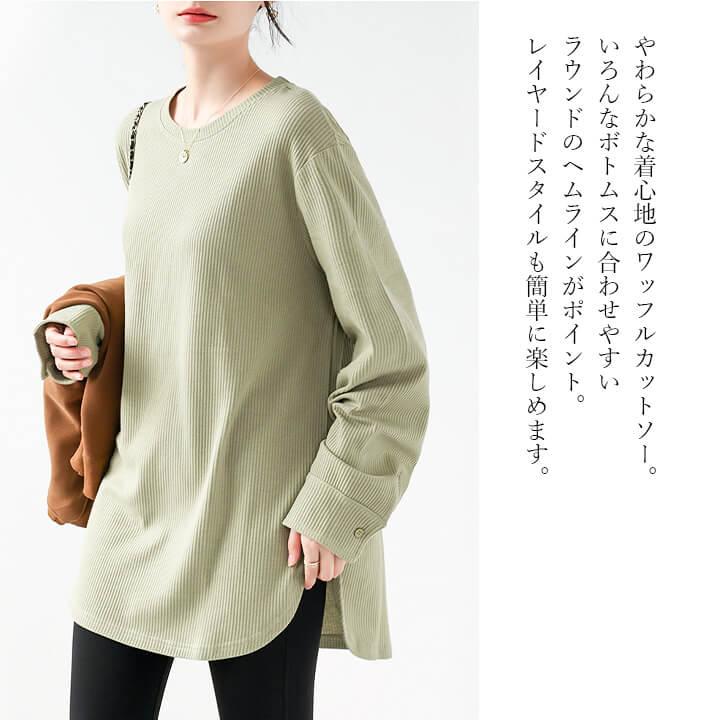 You Color レディース 長袖 ロングTシャツ ワッフル カットソー Tシャツ 凸凹 大きいサイズ 体型カバー 無地 クルーネック カジュアル お尻が隠れる rt3092